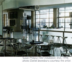 Filter, 1998, and lnternationale, 1999, are both work that seem strangely out of place in their own company. The Internationale, the aural emblem of revolutionary socialism, is sung here by an individual in a slow and measured pace without any of the triumph or gusto of previous renditions, while Filter, a compilation of four more contemporary and better known songs, each alluding to themes of alienation, estrangement and loneliness, is barely recognisable in its a capella version. The will to identify with a throng of like-minded individuals that The Internationale facilitated, or the teenage need to affiliate with articulations of isolation, are still active factors in these songs. In fact they are resurgent aspects of our reception of this work; they well up in our consciousness as we recognise these lyrics again. However, the circumstances within which they are delivered radically alters our perception of them; now there is no structure, no community in place to facilitate this blind identification. Our urge to let ourselves be carried away, to immerse ourselves in the connotative associations, integral elements of the songs in other contexts, is stopped cold as there is no apparatus in place to allow us to do this. In Philipsz' version the Internationale does not lead us anywhere except back to itself as a phonic entity, while the wistful melancholia of Filter is cut adrift from its contemporary rock context as it floats aimlessly in the setting of a bus centre. At the same time the singing of Filter is extremely reflexive: each song narrates its own story of withdrawal and disengagement—"I sit and watch as tears go by," "Don't ever ask your love of me," "Who cares what it does..." etc. All the lyrics signify a retreat from public life, a cocooned withdrawal for protection; this meaning is amplified as the metaphors within the songs become synonymous with the method of their delivery. In this sense the work is "semantically reflexive," insofar as it becomes a part of what it means.6 In the specific context of the Laganside bus centre then, with its familiar and reassuring ergonomics and signage, where every sign has a strict and definite meaning, where all the codes of communication are adhered to rigorously and unambiguously, the singing has a destabilising effect. Equally playing the Internationale into a public thoroughfare in Valencia in Spain, given the nation's own recent history and the associations with the song, tests its ambiguity to the limits of public acceptability. To use Kwon's term, both these pieces engage in a process of "double mediation": they defy the positivism of the technology they appropriate, reintroducing the human voice through the cable ducts and tannoy systems of these overdetermined public spaces, while at the same time refusing the tendency to regress into the glibly comforting or utopian as the ambiguity of their delivery never offers solace or hope. Instead the works pit us in a dynamic relation to the space; they create a strange sense of self awareness. The urge to identify with the song, with the vulnerability that the lone voice represents, the memories and associations that it brings to the fore, is made visible to us as they are experienced out of context.