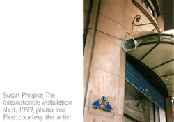 Filter, 1998, and lnternationale, 1999, are both work that seem strangely out of place in their own company. The Internationale, the aural emblem of revolutionary socialism, is sung here by an individual in a slow and measured pace without any of the triumph or gusto of previous renditions, while Filter, a compilation of four more contemporary and better known songs, each alluding to themes of alienation, estrangement and loneliness, is barely recognisable in its a capella version. The will to identify with a throng of like-minded individuals that The Internationale facilitated, or the teenage need to affiliate with articulations of isolation, are still active factors in these songs. In fact they are resurgent aspects of our reception of this work; they well up in our consciousness as we recognise these lyrics again. However, the circumstances within which they are delivered radically alters our perception of them; now there is no structure, no community in place to facilitate this blind identification. Our urge to let ourselves be carried away, to immerse ourselves in the connotative associations, integral elements of the songs in other contexts, is stopped cold as there is no apparatus in place to allow us to do this. In Philipsz' version the Internationale does not lead us anywhere except back to itself as a phonic entity, while the wistful melancholia of Filter is cut adrift from its contemporary rock context as it floats aimlessly in the setting of a bus centre. At the same time the singing of Filter is extremely reflexive: each song narrates its own story of withdrawal and disengagement—"I sit and watch as tears go by," "Don't ever ask your love of me," "Who cares what it does..." etc. All the lyrics signify a retreat from public life, a cocooned withdrawal for protection; this meaning is amplified as the metaphors within the songs become synonymous with the method of their delivery. In this sense the work is "semantically reflexive," insofar as it becomes a part of what it means.6 In the specific context of the Laganside bus centre then, with its familiar and reassuring ergonomics and signage, where every sign has a strict and definite meaning, where all the codes of communication are adhered to rigorously and unambiguously, the singing has a destabilising effect. Equally playing the Internationale into a public thoroughfare in Valencia in Spain, given the nation's own recent history and the associations with the song, tests its ambiguity to the limits of public acceptability. To use Kwon's term, both these pieces engage in a process of "double mediation": they defy the positivism of the technology they appropriate, reintroducing the human voice through the cable ducts and tannoy systems of these overdetermined public spaces, while at the same time refusing the tendency to regress into the glibly comforting or utopian as the ambiguity of their delivery never offers solace or hope. Instead the works pit us in a dynamic relation to the space; they create a strange sense of self awareness. The urge to identify with the song, with the vulnerability that the lone voice represents, the memories and associations that it brings to the fore, is made visible to us as they are experienced out of context.